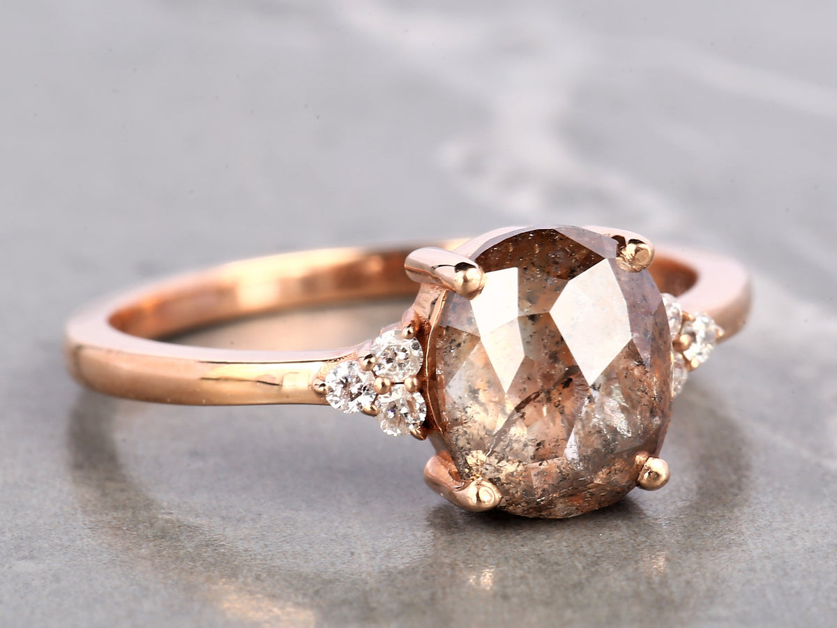 Orange Diamond Ring 14K Gold Engagement Ring, Natural Oval Diamond Ring, Gift for Her
