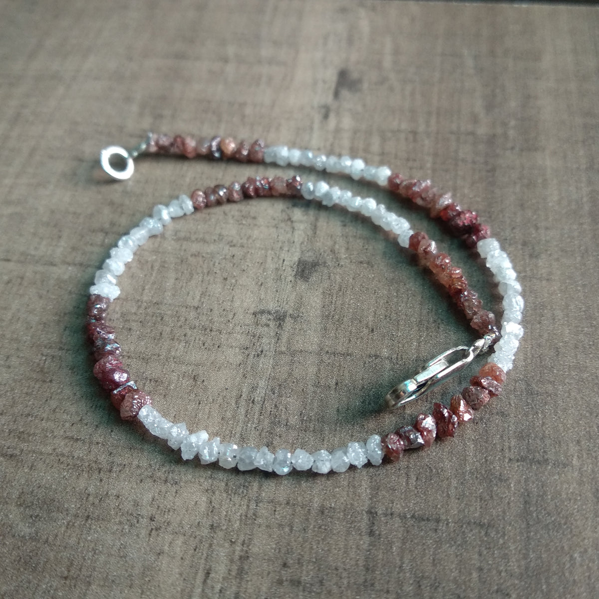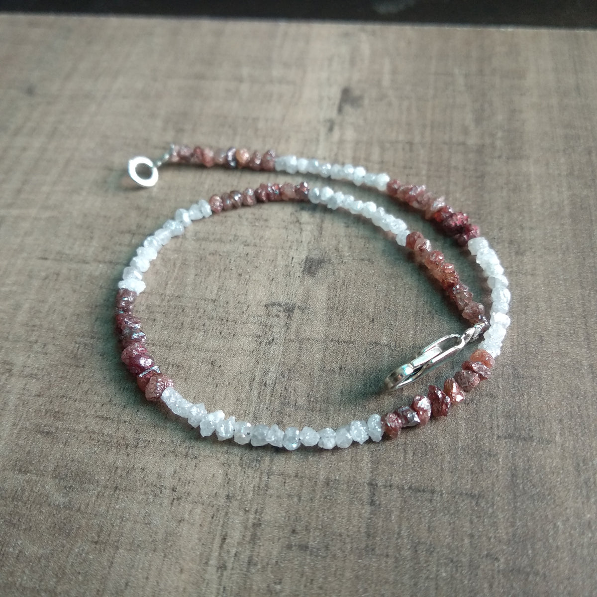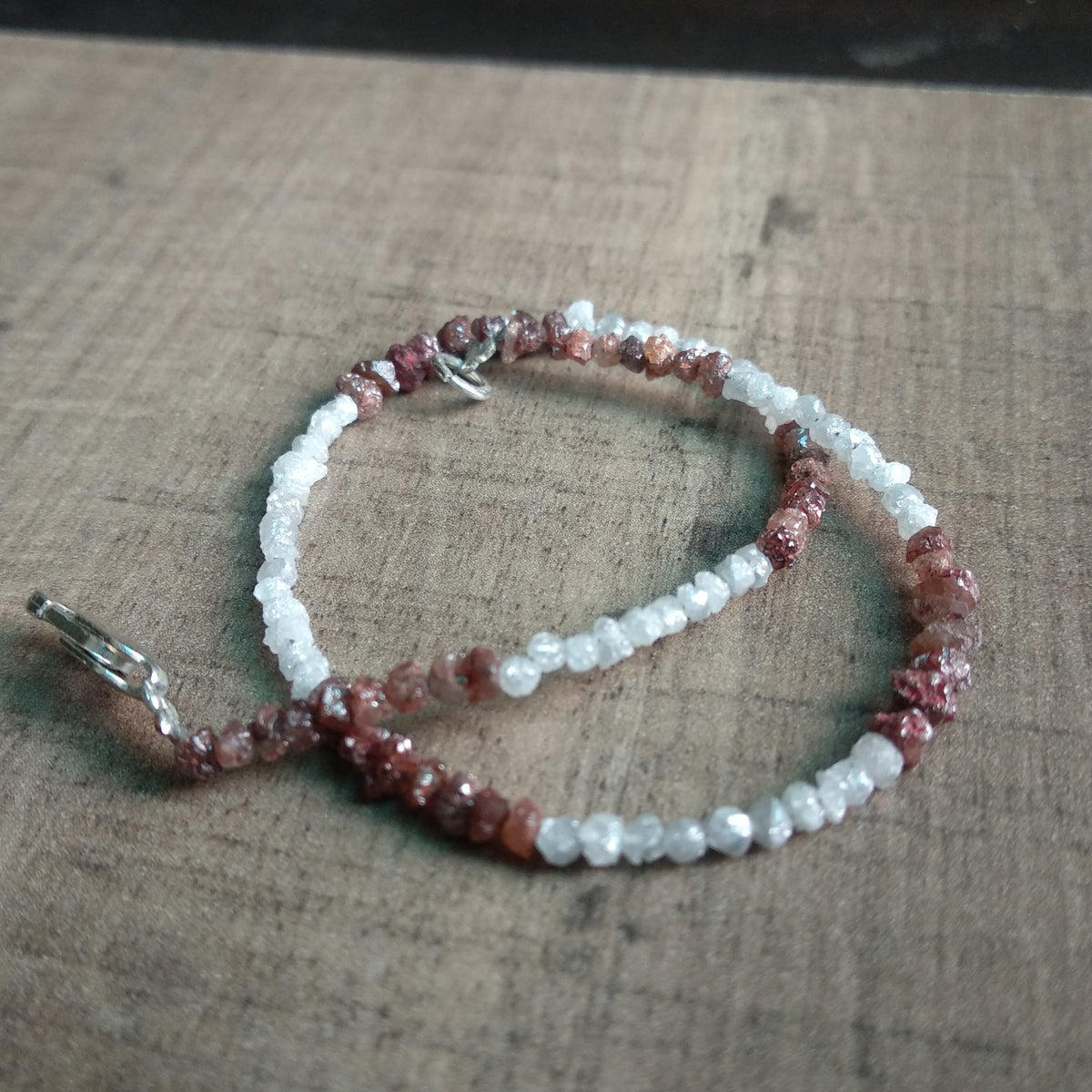 Type :- 100% Natural Conflict Free White Red Loose Rough Diamond Beads Bracelet
