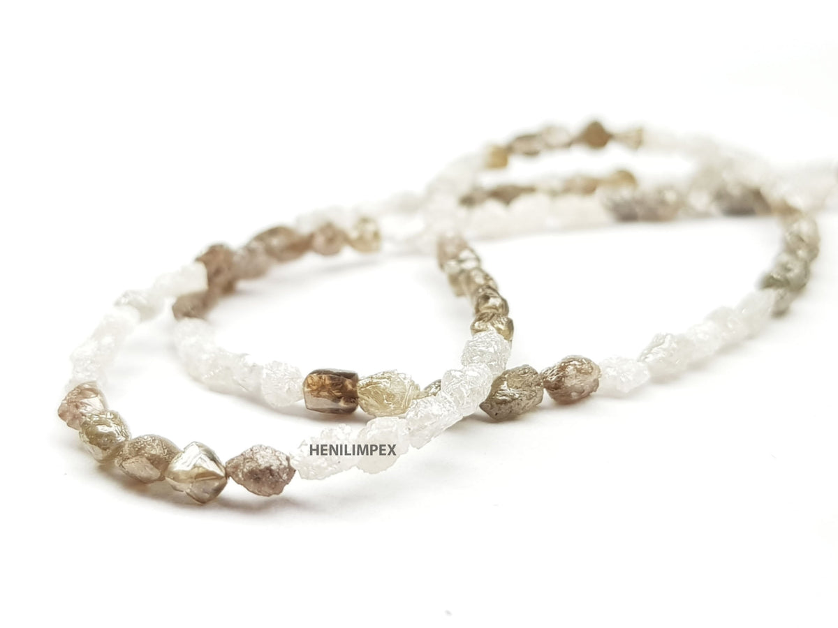 Type :- 100% Natural White & Brown Long Drilled Rough Diamond Beads Strand