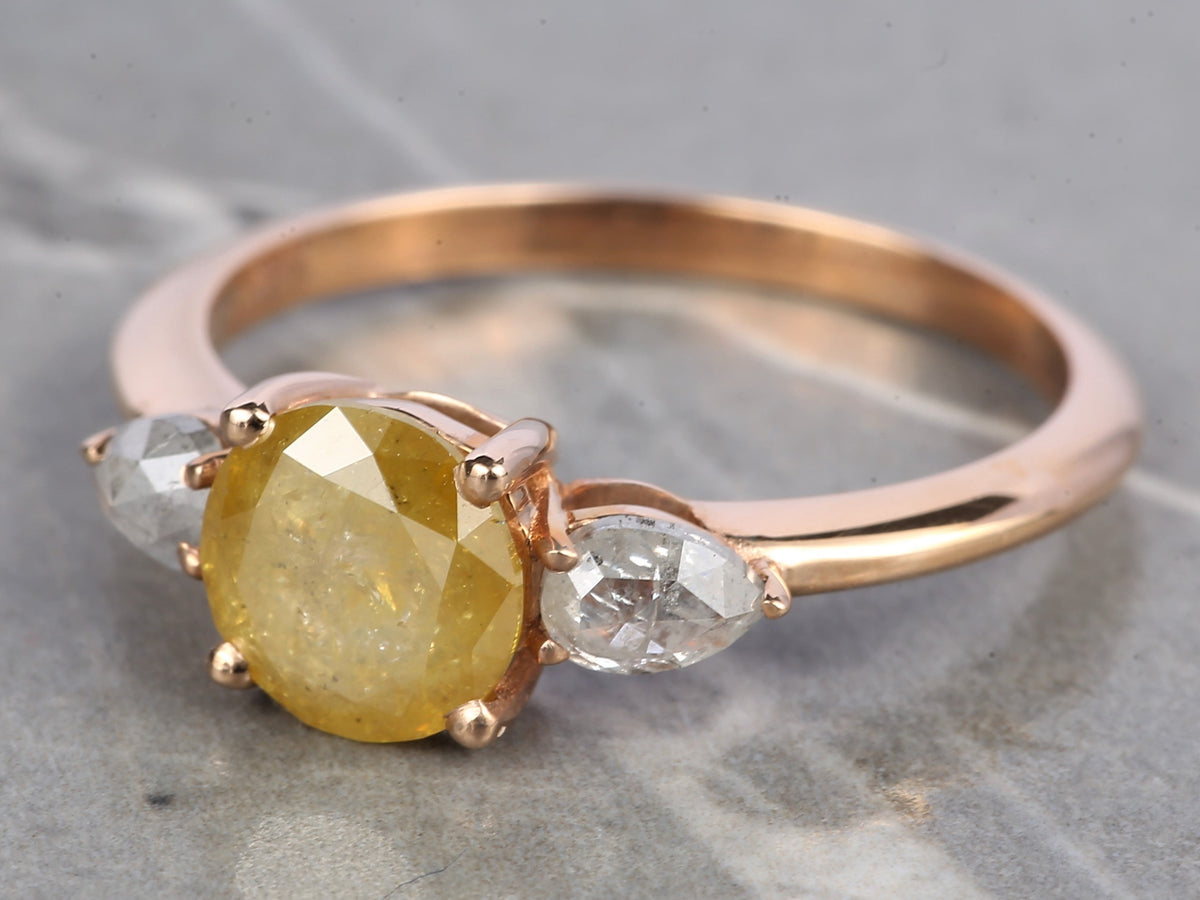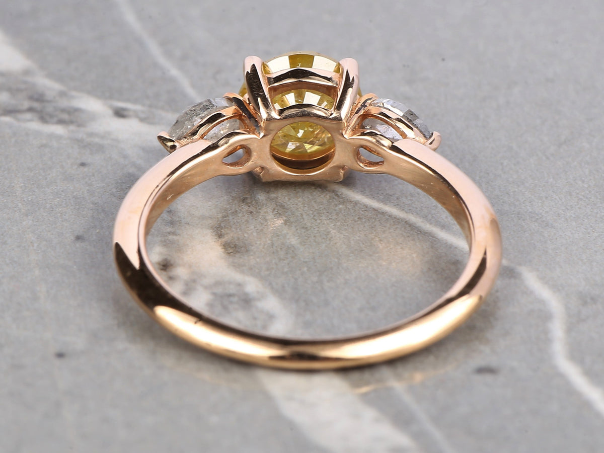 Yellow Diamond Engagement Ring, Natural Round Diamond, 14k Yellow White Rose Gold Ring, Pear Cut Diamond Gift Ring, Anniversary Ring Gift